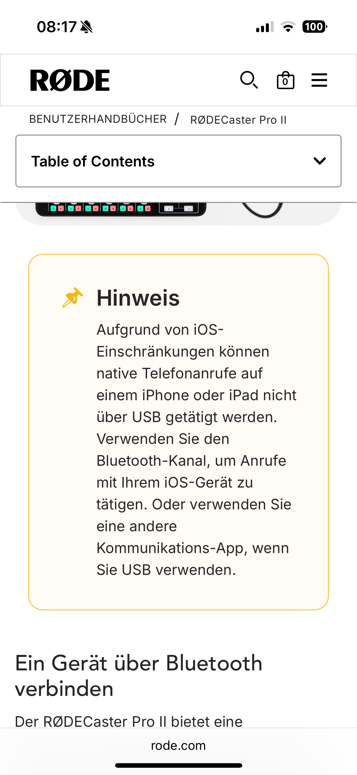 ah, ich verstehe es jetzt besser. Es handelt sich um die Bluetooth-Verbindung vom iPhone zum Rordecaster Pro II (RCPII), richtig?