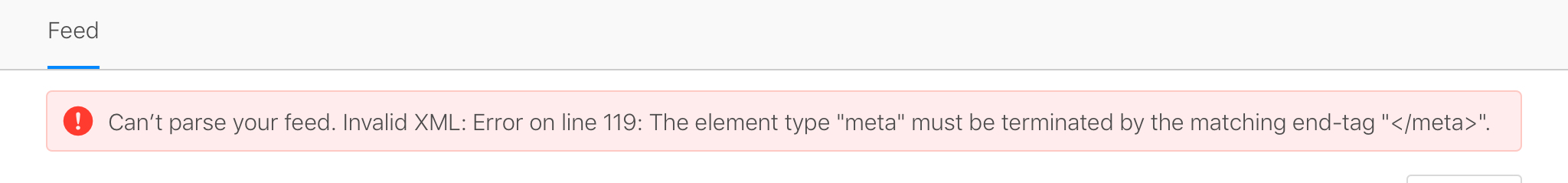 Nachdem das Löschen geklappt hat, habe ich den Feed wieder angegeben und zur Überprüfung gesendet. Danach bekomm ich aber einen Fehler. Hätte jemand eine Lösung dafür? Jetzt bin ich mit dem Latein echt am Ende.