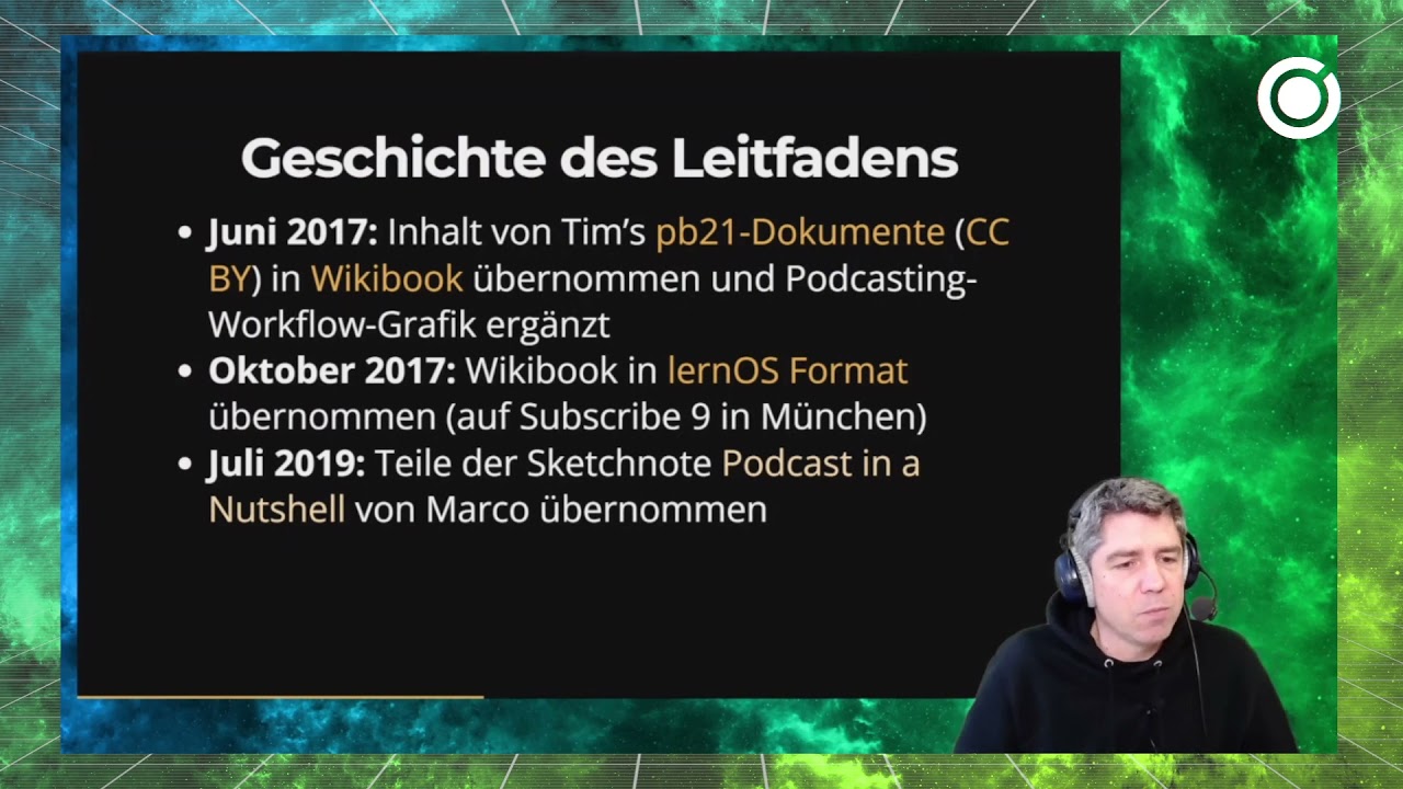 zu 4.) fällt mir nicht viel ein. Da ich Lehrer bin, freue ich mich über solches Lernmaterial mit einer freien CC-Lizenz, so dass ich es auch in die schulische Lernplattform einstellen kann. Eine direkte Nutzungsmöglichkeit in Unterrichtsszenarien sehe ich im Moment noch nicht in den Materialien enthalten. Dafür fehlen konkrete Anwendungsbeispiele. Ich wüsste jetzt nicht, wie ich diese technische Ausstattung im Unterricht einbringen kann, so dass die Schüler*innen in Klassenstärke selbst tätig werden können. Über einen eigenen Solopodcast und die vereinzelte Mitwirkung in anderen Podcasts bin ich noch nicht hinausgekommen.