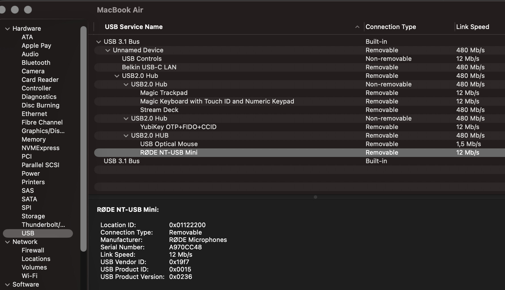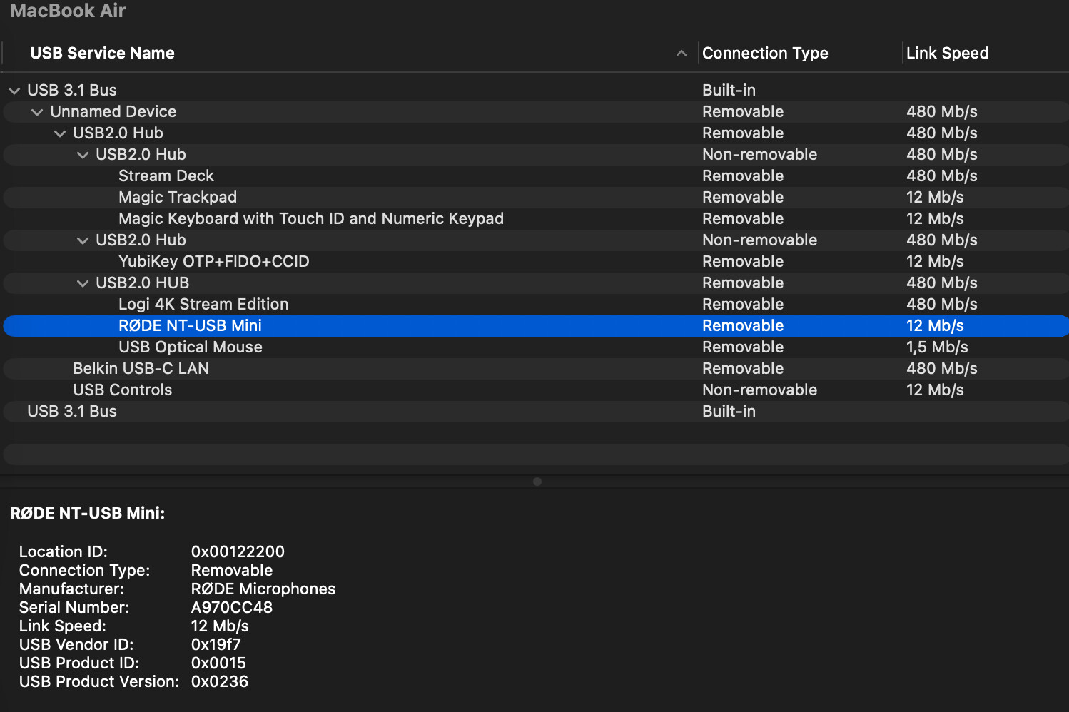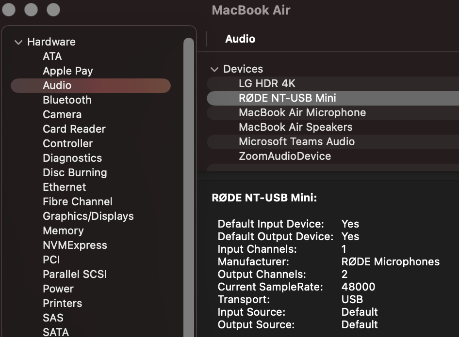 Nun habe ich seit ca 3 Wochen das Problem, dass beim privaten Laptop das NT-USB zwar im USB auftaucht aber nicht mehr als Audio Interface auftaucht. Beim work laptop läuft alles super. Auch wenn ich das NT-USB Mini direkt per usb-c in den MB Air stecke, taucht es nicht als Audio device auf.